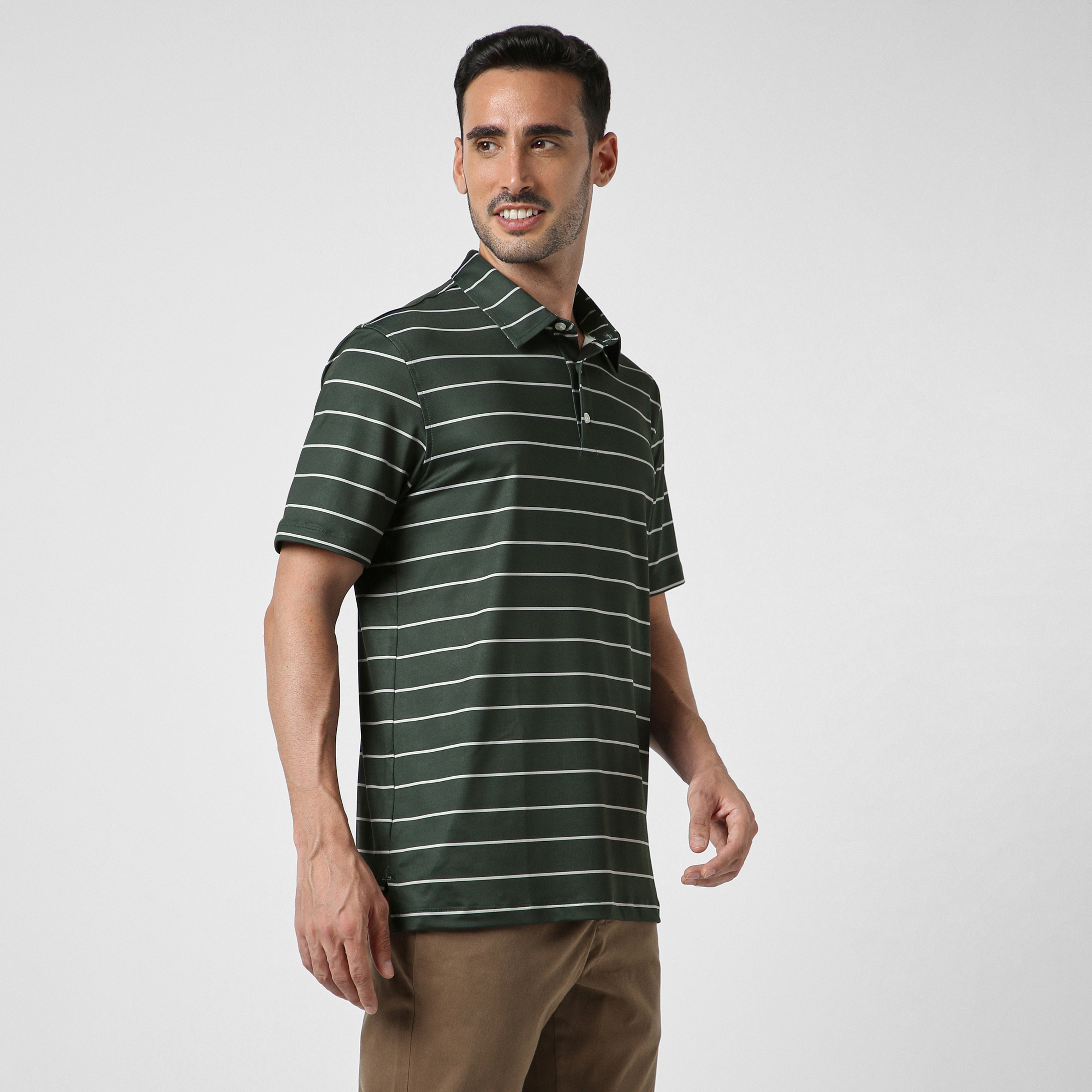 Performance Stripe Polo Forest Stripe front with collar, short sleeves, and 3 buttons