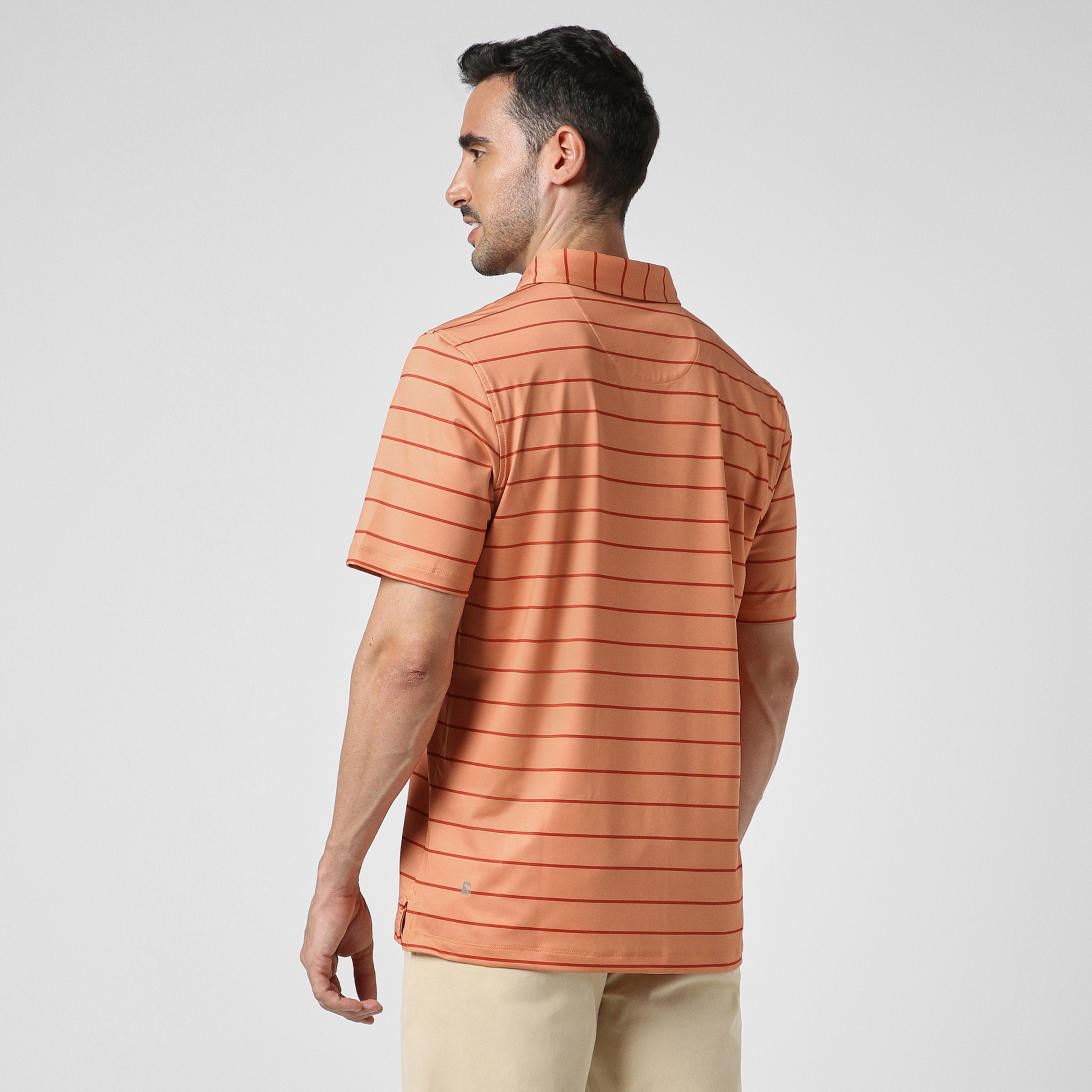 Performance Stripe Polo Peach Stripe back with collar and short sleeves