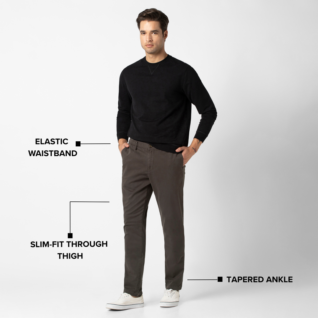 The Modern Fit pairs a timeless, slim-fit thigh with a tapered ankle for a tailored silhouette. Featuring an elastic waistband for comfort, it offers the perfect balance of style and all-day wearability.